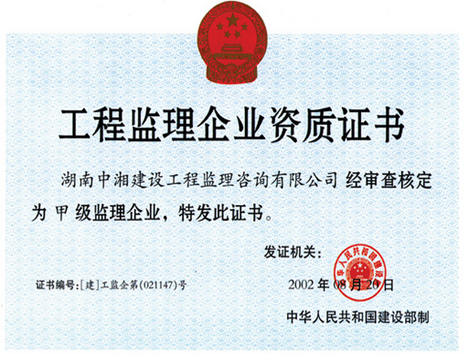 工程監(jiān)理企業(yè)資質證書