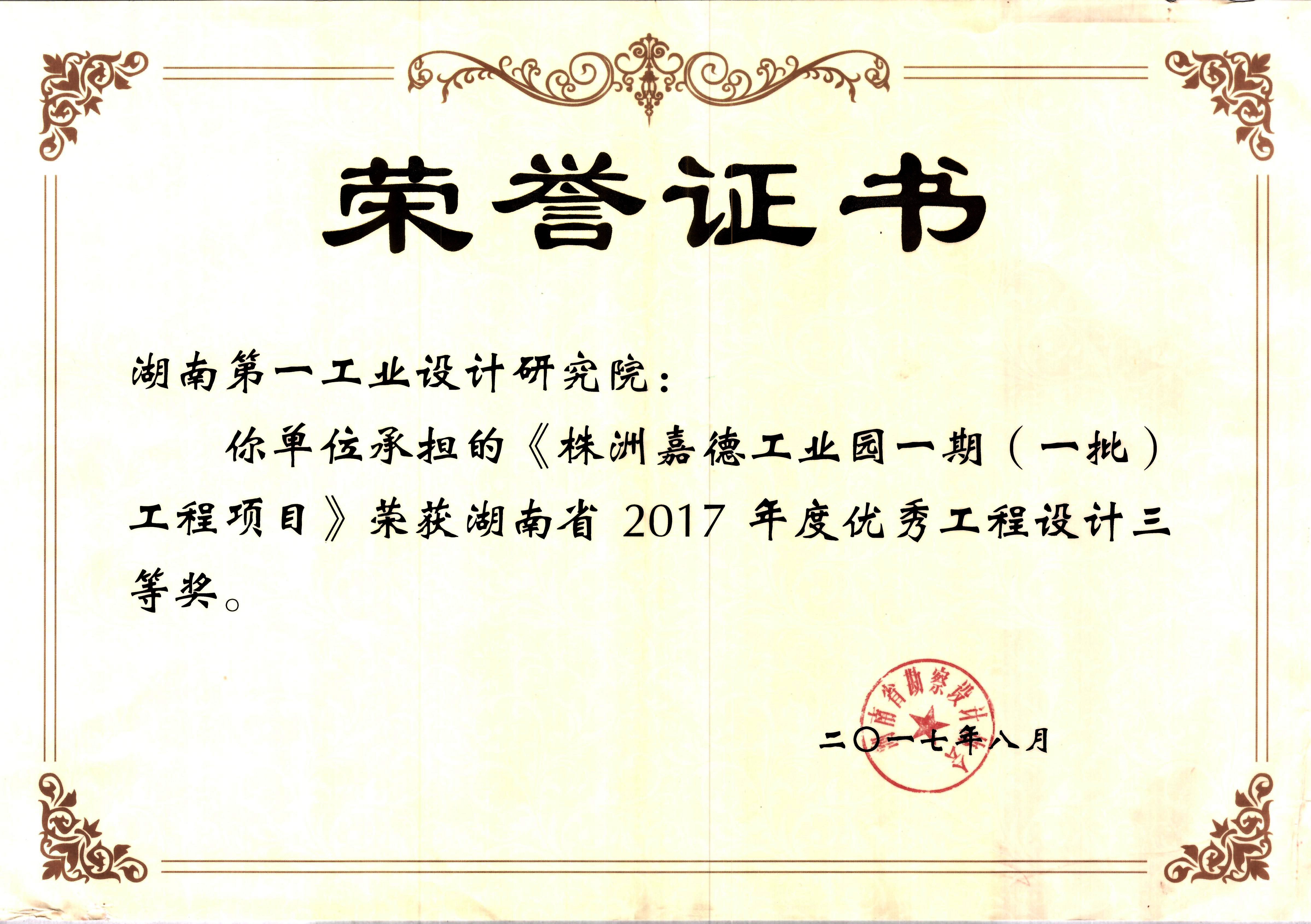 湖南省優(yōu)秀設計表揚金獎(1984)