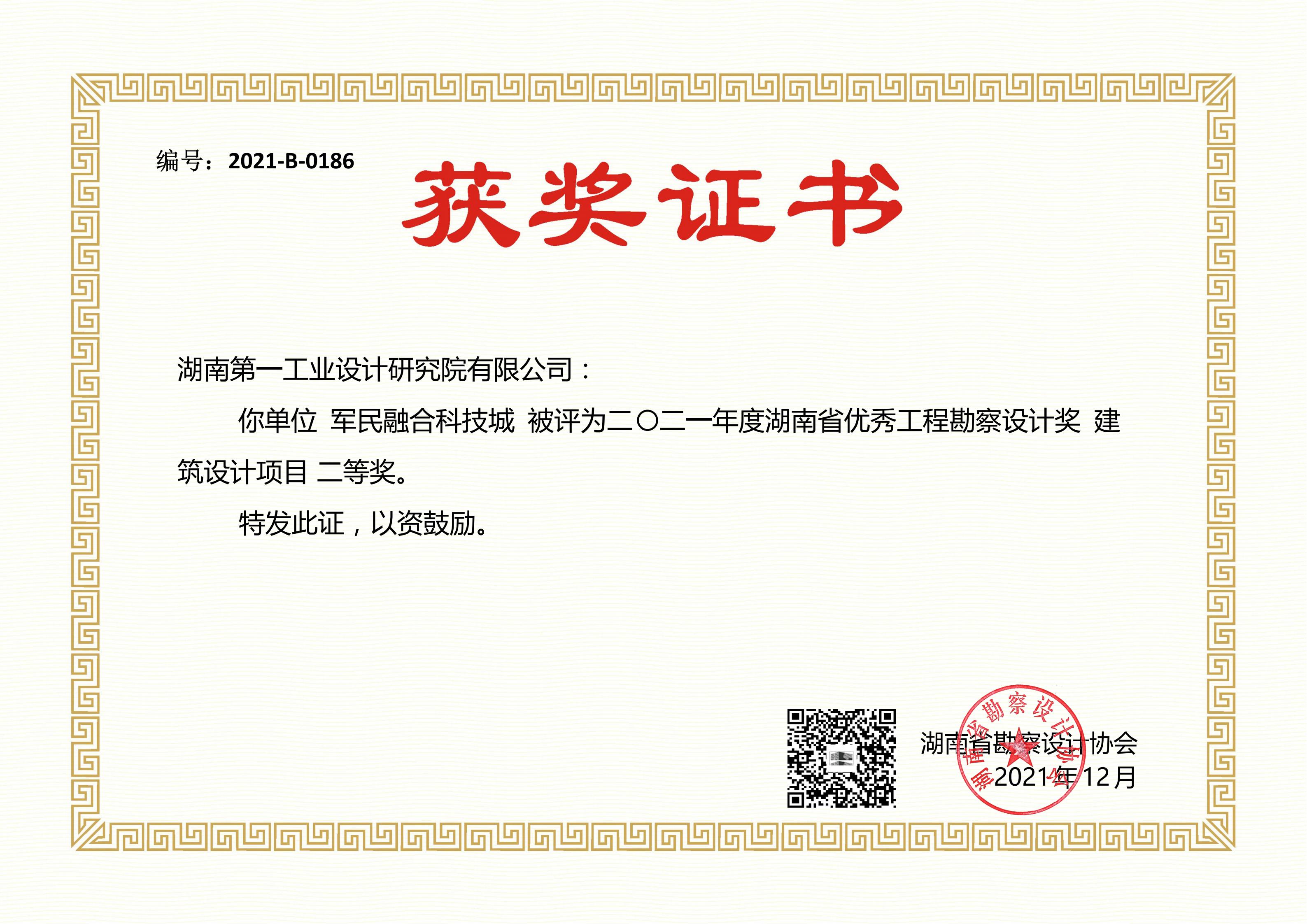 湖南省優(yōu)秀設計項目二等獎(1984)